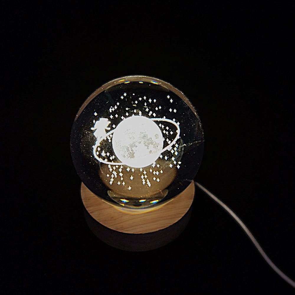 Μια πρωτότυπη κρυστάλλινη σφαίρα. Η επεξεργασία του θέματος έγινε με χαρακτική laser. Η ξύλινη βάση διαθέτει led φωτισμό. Λειτουργεί με USB καλώδιο και on/off διακόπτη.