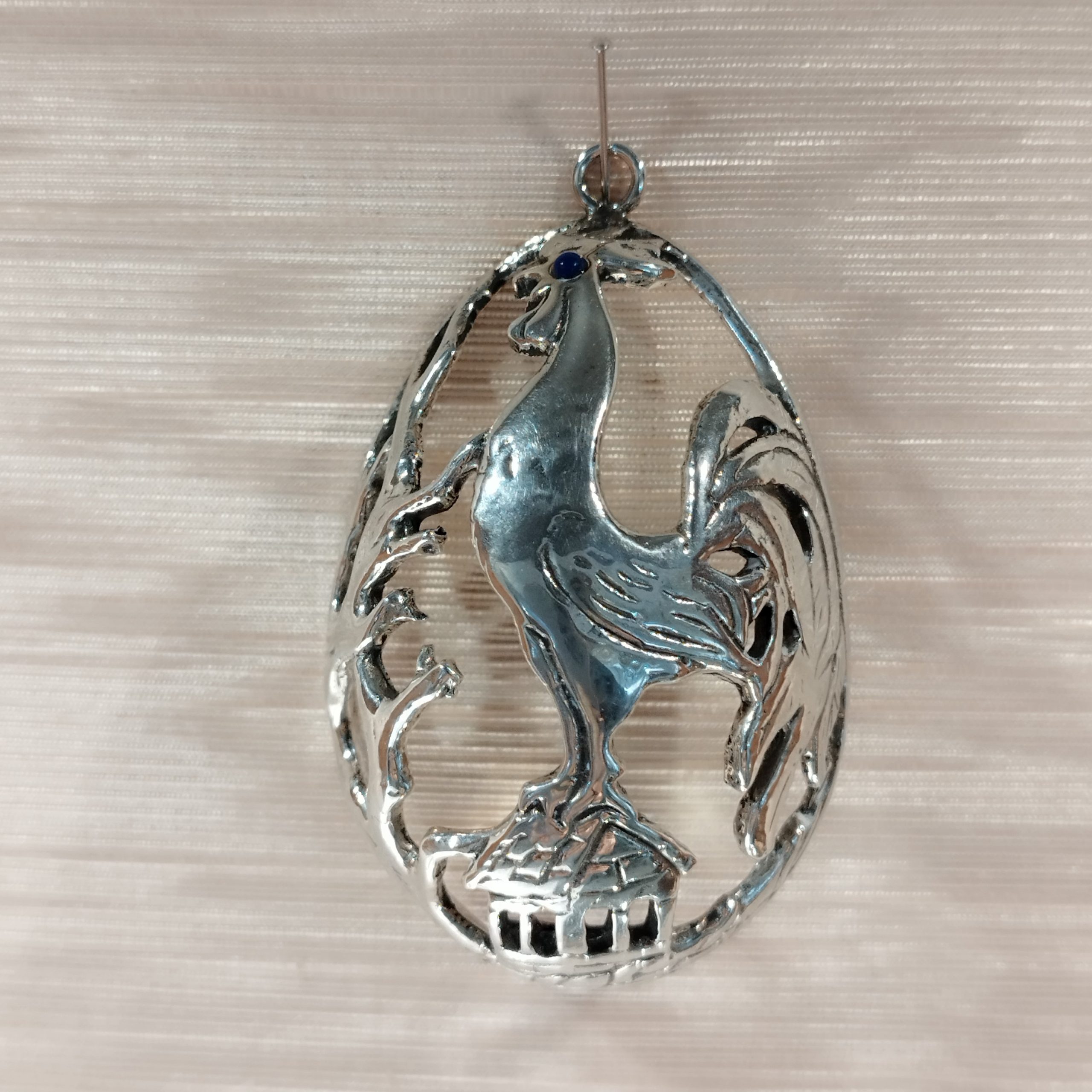 Το αυγό είναι από ελληνικό ασήμι 925°,με πατίνα για να μένει αναλλοίωτο στο χρόνο. Διαχρονικό και κλασσικό . Την επιφάνειά του διακοσμεί ένα παιχνιδιάρικο κουνελάκι και μια μικρή κότα, χαρακτηριστικά σύμβολα του Πάσχα. Η βάση είναι λεία και συνοδεύει το αυγό.