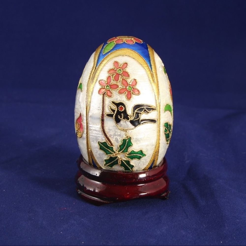 Το αυγό είναι από ελληνικό ασήμι 925°,με πατίνα για να μένει αναλλοίωτο στο χρόνο. Διαχρονικό και κλασσικό . Την επιφάνειά του διακοσμεί ένα παιχνιδιάρικο κουνελάκι και μια μικρή κότα, χαρακτηριστικά σύμβολα του Πάσχα. Η βάση είναι λεία και συνοδεύει το αυγό.