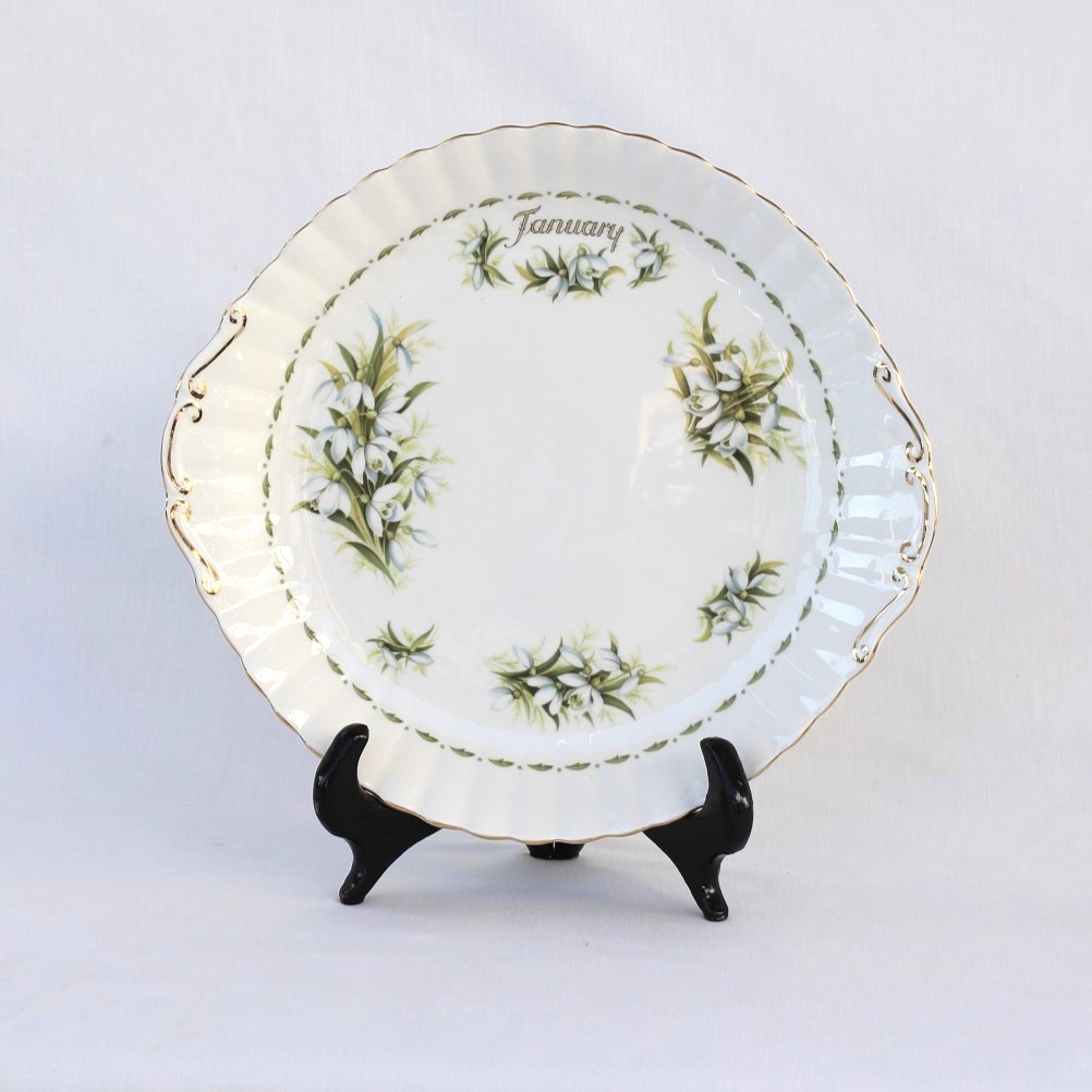 Η πιατέλα είναι διακοσμημένη με ροζ, μπορντό και κίτρινα τριαντάφυλλα και χειροποίητη χρυσή ρίγα στο περίγραμμα του. H ποιότητα της πορσελάνης είναι εξαιρετική και το σχέδιο συνδυάζει την ομορφιά του κλασσικού με την κομψότητα. Στη βάση φέρει το λογότυπο της εταιρείας.