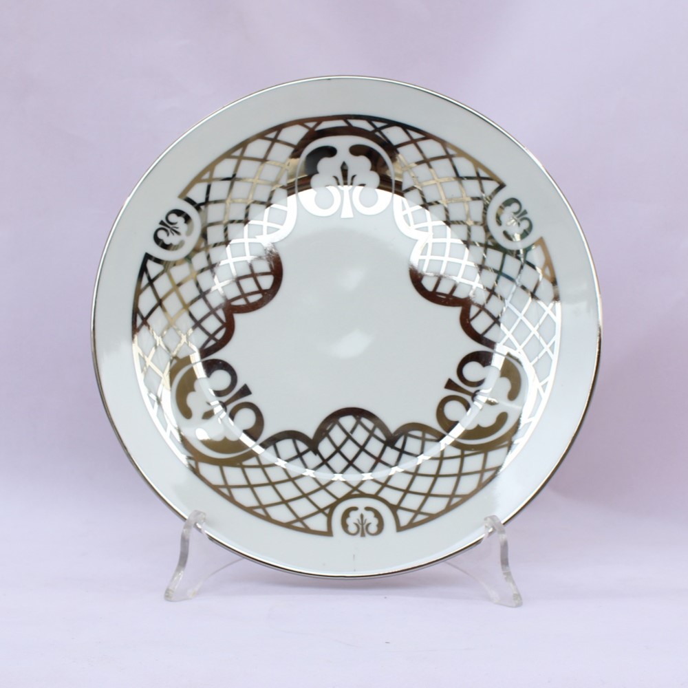 Το πιάτο είναι φτιαγμένο από λευκή πορσελάνη Shibata υψηλής ποιότητας, και ζωγραφισμένο στο χέρι. Το θέμα είναι φωτεινό, σε παστέλ αποχρώσεις. Οι λεπτομέρειες είναι δουλεμένες με φύλλο χρυσού. Στην πίσω πλευρά φέρει σφραγίδα γνησιότητας. Προέλευση : Ιαπωνία