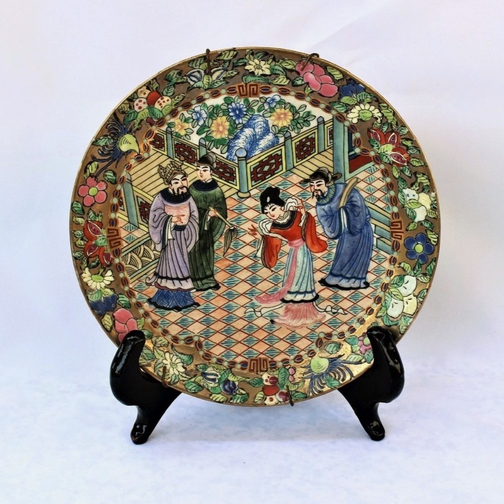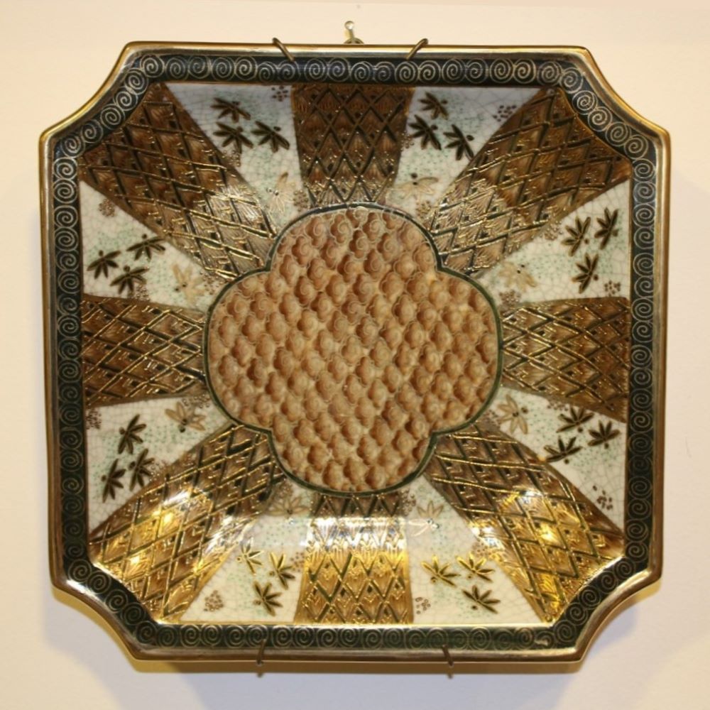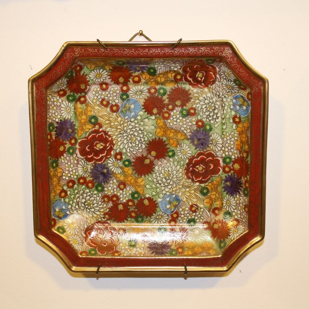 Η πορσελάνη είναι κρακελέ .Το θέμα διακοσμεί όλη την επιφάνεια του πιάτου, σε έντονες αποχρώσεις , δίνοντας μια εντυπωσιακή εικόνα. Οι λεπτομέρειες είναι δουλεμένες με φύλλο χρυσού. Στην πίσω πλευρά φέρει σφραγίδα γνησιότητας. Προέλευση: Ιαπωνία